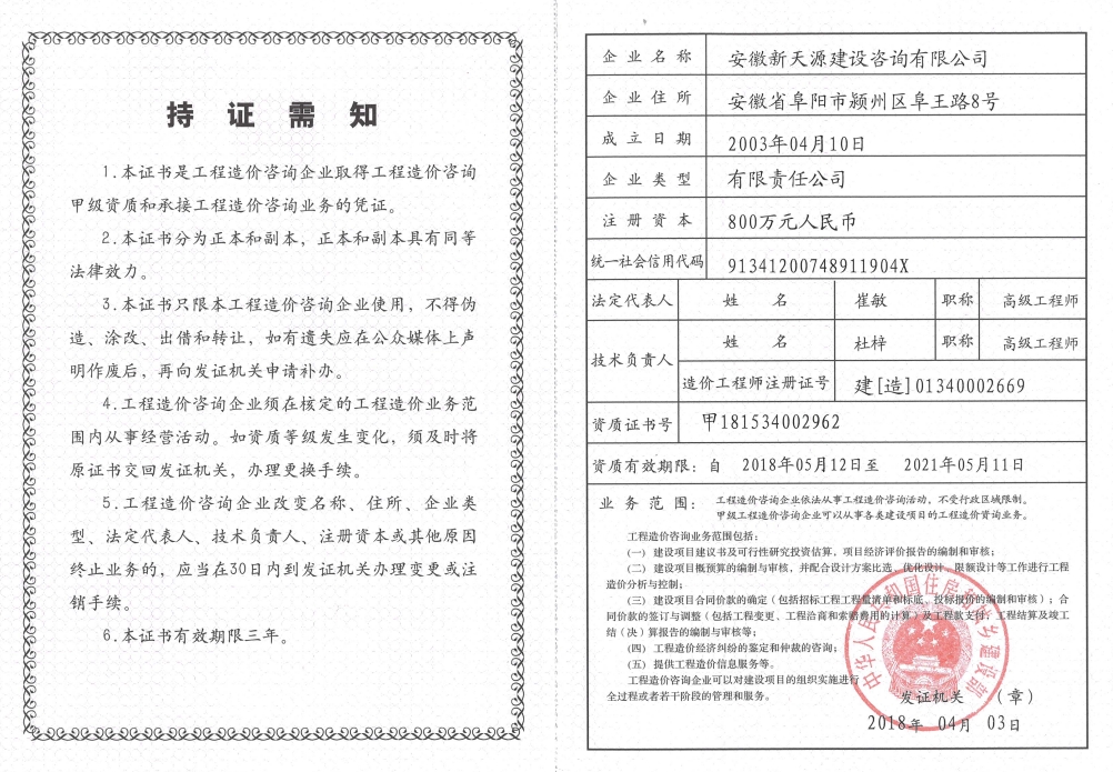 工程造價(jià)咨詢企業(yè)甲級(jí)